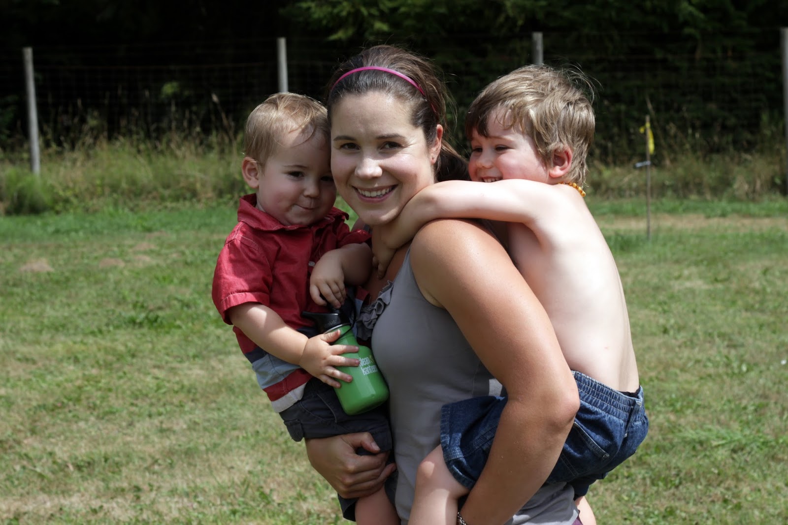We had a wonderful time on our four day camping trip to Darringon last weekend. My friend owns property that backs up to a campground so we had the perfect spot. Dense, lush forest, two acres fenced so dog and kids can run wild, river on the property and a five minute walk to the bathrooms and water at the campground next door. It was Elliott's first camping trip, and Oliver's first in two years (we didn't go last year since Elliott wasn't walking yet) and the boys couldn't have been more excited! One of their favorite things was "trying" to fall asleep with their daddy in the tent. Two naked boys running around wild in the tent, with Nick laying in there with them lead to many hours of roughhousing and not so many hours of sleeping. I'm pretty sure they are still catching up on lack of sleep. We went on two beautiful hikes and Nick and I each wore a kid when they got tired so we could actually hike some as well. Oliver tried fishing for the first time and didn't seem too disappointed that the trout weren't interested in the piece of hot dog we put on the hook (didn't have bait).